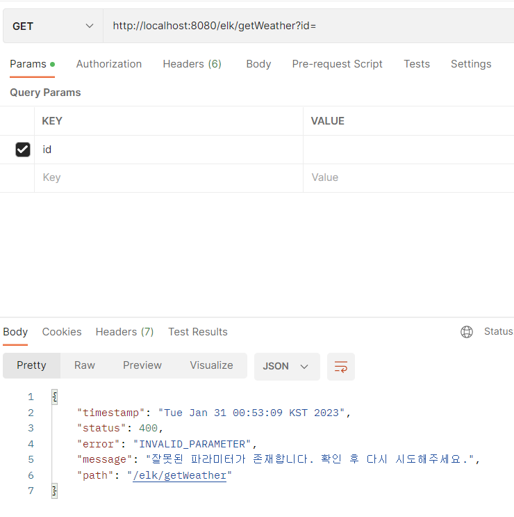 .post(http://localhost:8080/elk/getWeather?id=”서울”)