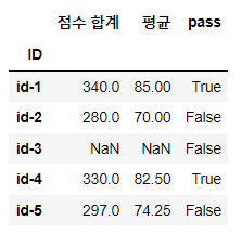 # 결과 데이터프레임에 결측치 포함