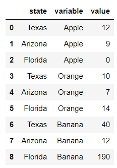 state_fruit_melt = sf.melt(id_vars=['state'], # 컬럼으로 유지될 컬럼명
